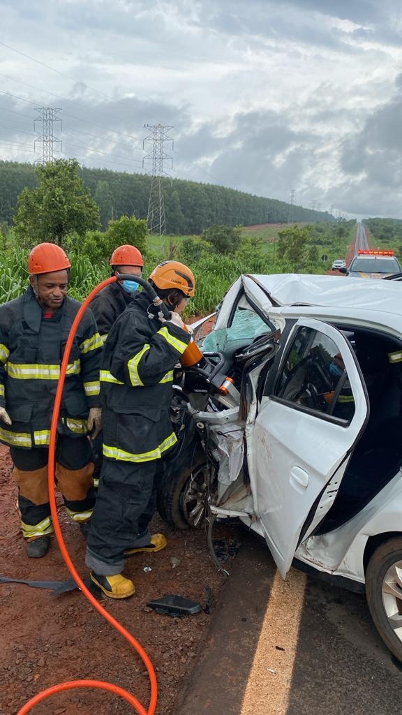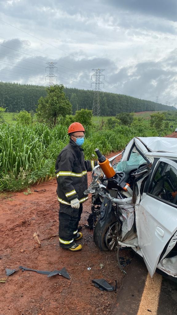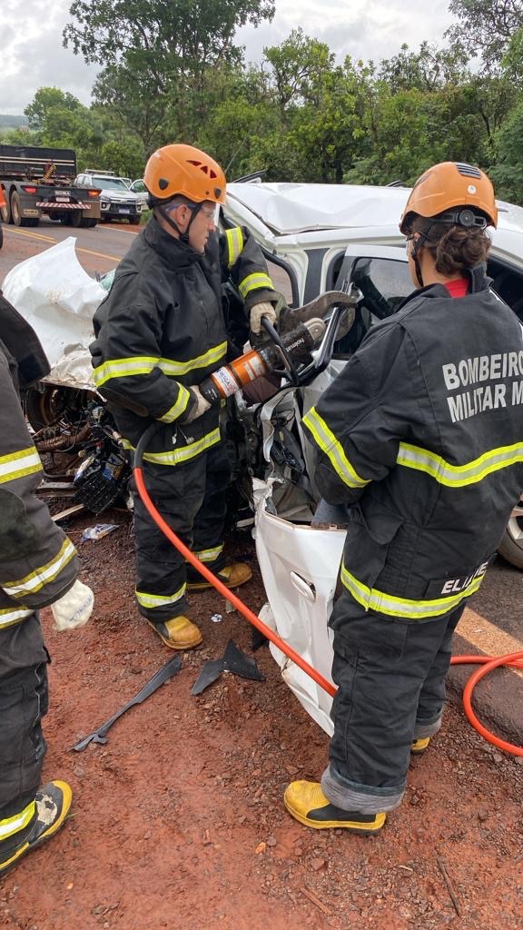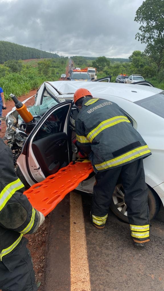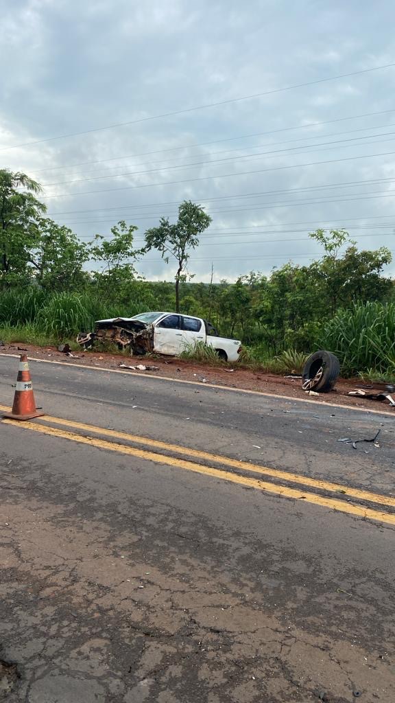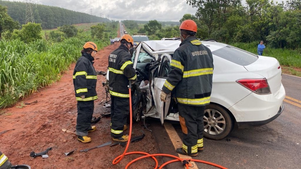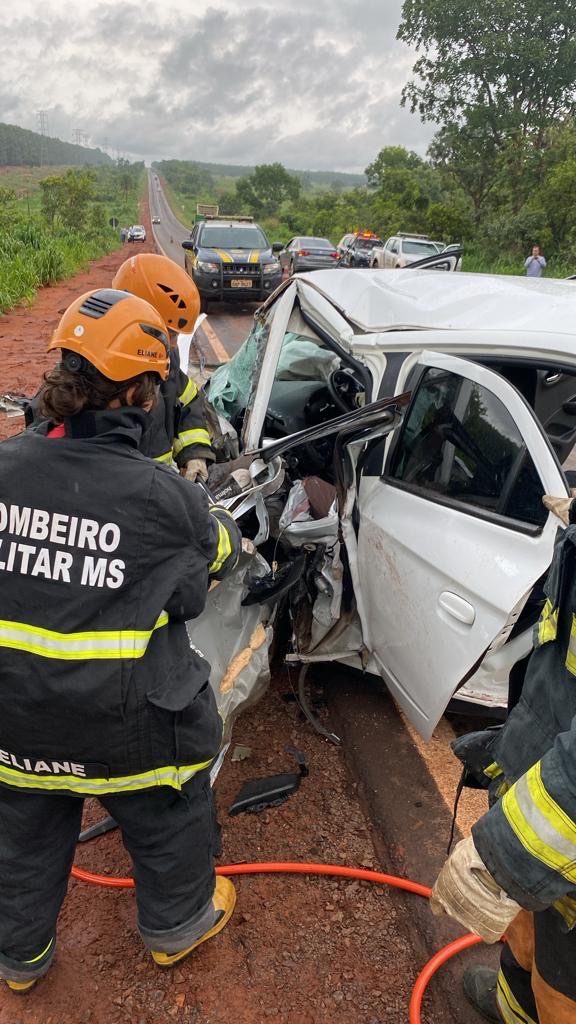 A Polícia Rodoviária Federal (PRF) informou que a colisão frontal ocorreu quando o carro de passeio, que seguia sentido Três Lagoas a Água Clara, invadiu a faixa de trânsito do sentido contrário colidindo frontalmente com a caminhonete.