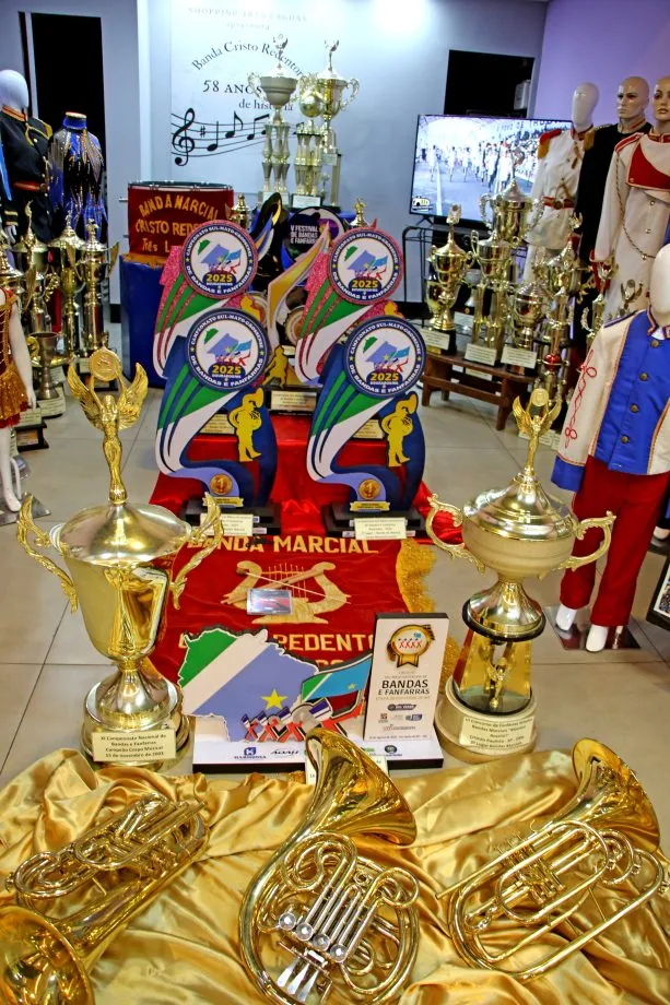 A exposição, aberta ao público até o dia 5 de novembro, reúne uniformes, troféus e medalhas conquistados em competições e eventos regionais e nacionais, destacando a importância da banda como patrimônio cultural do município.